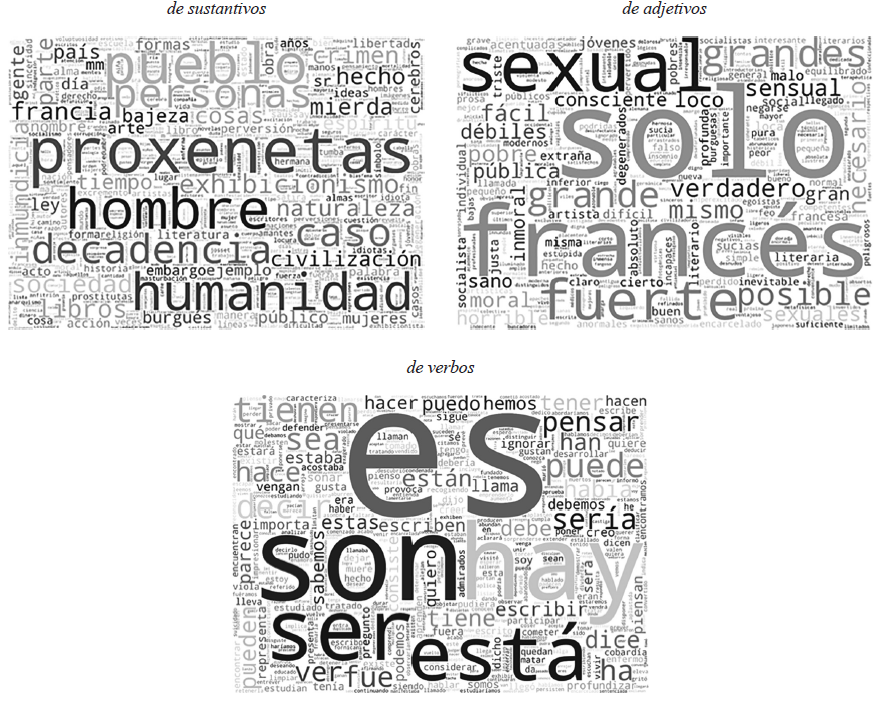 “Se puede entender, además, como algo medio razonable, el crimen político anarquista (...) Por ejemplo, nada más comprensible que el asesinato del rey Carlos de Portugal. Pero hay muchas cosas que lo disculpan. Las expectativas a la moral no tienen excusa posible; no es el espíritu revolucionario (porque uno se rebela sólo contra el mal), no lo es (...). Es el individualismo opresivo. Sí, por eso lucho contra todas las manifestaciones de suciedad y erotismo en la literatura, en el teatro, en todas partes. Sí, porque por mucho que odie al hombre celador, lo que hace matar y deshonrar, tanto detesto la sensualidad literaria, como al hombre que encarcela a los demás y la bajeza del alma que mata el espíritu de elevación, que los deshonra por el toque degradante de su mentalidad sucia y estúpida. Odio el sensualismo literario porque es una expectativa de libertad individual, y amo y respeto más que cualquier otra cosa, la libertad debida a todos. Si el hombre fuera libre, sería bueno; no siendo así, el erotismo literario es un delito grave. No estando loco, no les pido a los Proxenetas que razonen. La libertad (como lo he demostrado en otra parte) consiste en tres cosas: nacer, seguir viviendo, por lo cual uno no puede, incluso sin dolor, matar a alguien. 2o vivir sin dolor, por lo cual no puedes lastimar, causar dolor a alguien. 3o vivir, desarrollar más de (...) ¿Tenía grandes hombres sensuales? Es cierto, pero no eran geniales en su sensualidad sino en su grandeza. Shakespeare no es (...) que la violación de Lucrecia. (cita Pascal) - La verdad es que a las pequeñas mentes siempre les gusta ver que se parecen a las grandes en algún lugar si esta noche solo se hace desde atrás. Pascal dijo que es fácil ser sensual como fácil caerse de un precipicio. Simplemente hay que tomarse de las manos. ¿Qué caracteriza al crimen de opresión política? ¿En qué consiste? ¿En la efusión de la personalidad, en la imposición antisocial de la fuerza psíquica, en el (...)? Este caso no difiere de aquél. Un hombre que escribe eróticamente sigue su sentimiento sensual; un tirano sigue su sentimiento de dominación. Ambos son egoístas, desigualmente peligrosos, dependiendo de las condiciones y la forma en que viven. Pero no es el dictador o el rey absoluto el que siempre es más peligroso”.