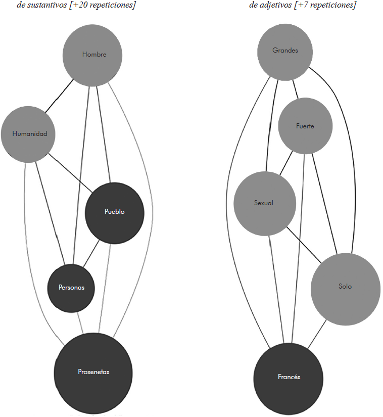 Visto así, este es un texto híbrido a cuatro voces: la primera voz son las 130 mil palabras del Libro del Desasosiego en portugués; la segunda es la del traductor al inglés Richard Zenith; la tercera es la de los algoritmos de inteligencia artificial estadísticos que calculan la frecuencia de proximidad entre palabras. La cuarta es la nuestra en dos sentidos, en la selección de las palabras ejemplificadas y la inclusión de otras palabras (menos del 5%) que intentan darle actualidad. Las redes semánticas no incluyen verbos, únicamente sustantivos y adjetivos.